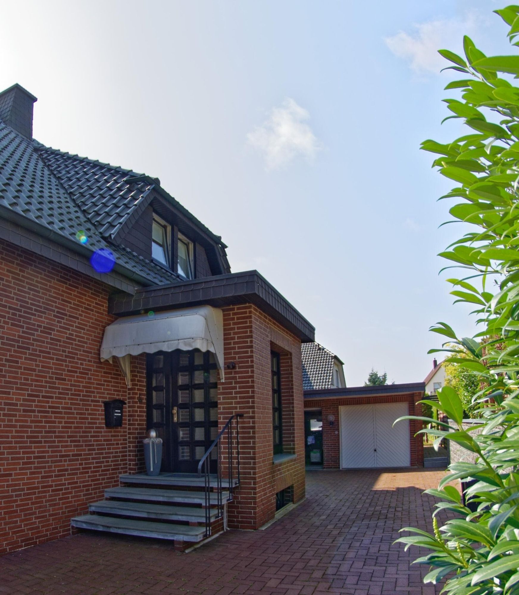Unsere helle und modern eingerichtete Wohnung in der 1. Etage bietet vom großen Balkon aus einen weiten Blick nach Süden in Richtung Bad Oeynhausen bzw. zur Nachbarstadt Löhne. Der großzügig geschnittene Wohnraum umfasst